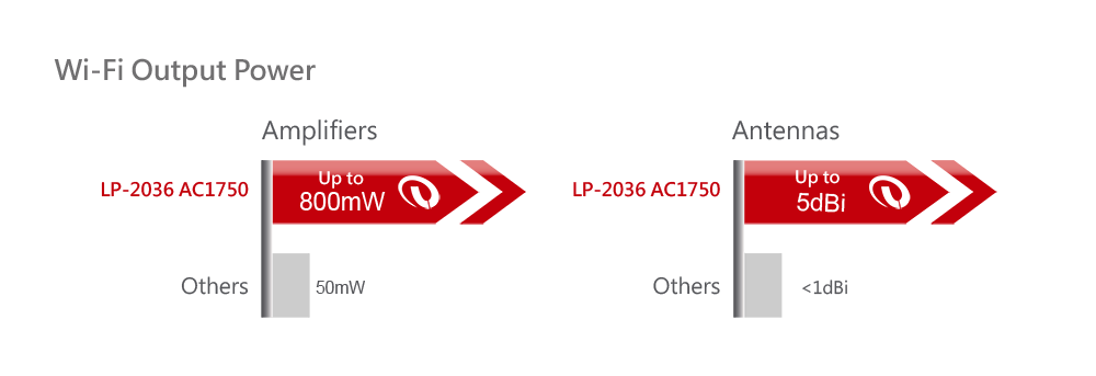 The LP-2036 high power Wi-Fi router with next generation 802.11ac brings incredible high speeds. Offering three times coverage, comparing with other standard Wi-Fi routers, the device is equipped 12 amplifiers, 3 high gain, dual band antennas. It is the superior choice for your home and office. With Loopcoom LP-2036, you can enjoy seamless HD video streaming, online gaming or experience ultrafast large data transfer.
